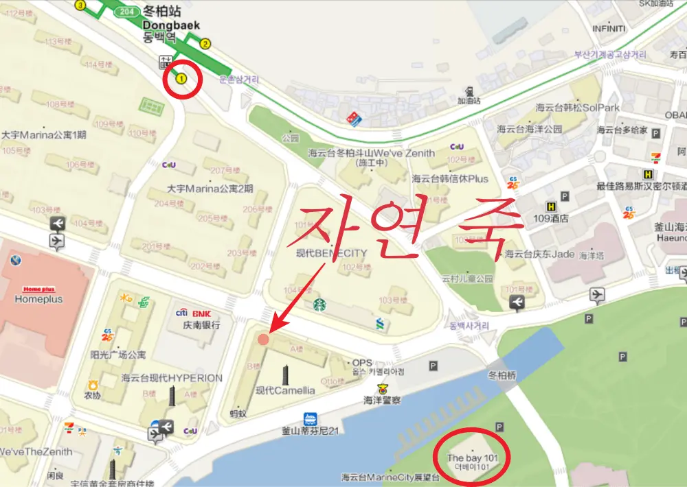 圖|자연 죽的相關位置圖,圖資來自韓巢地圖。