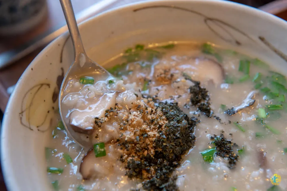 女王點的香菇牡蠣粥,配料跟牛肉粥一樣,粥品本身則是由整顆牡蠣取代了牛肉切絲,沒有腥味的牡蠣夠新鮮加上沒有過度的調味,軟滑爽口清甜好滋味,女王很喜歡,直說下次還要來。