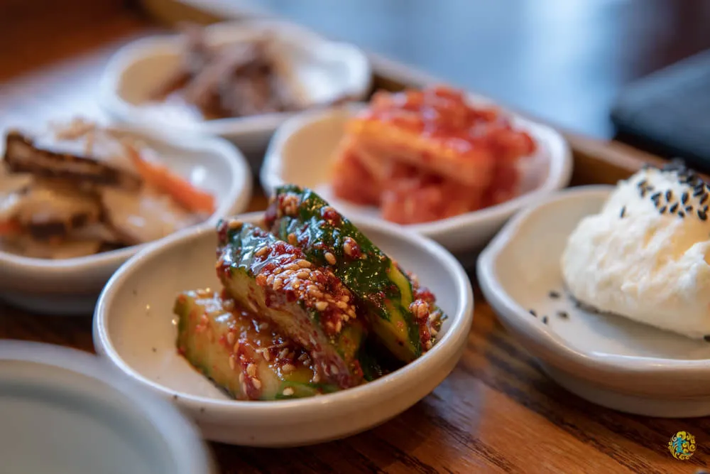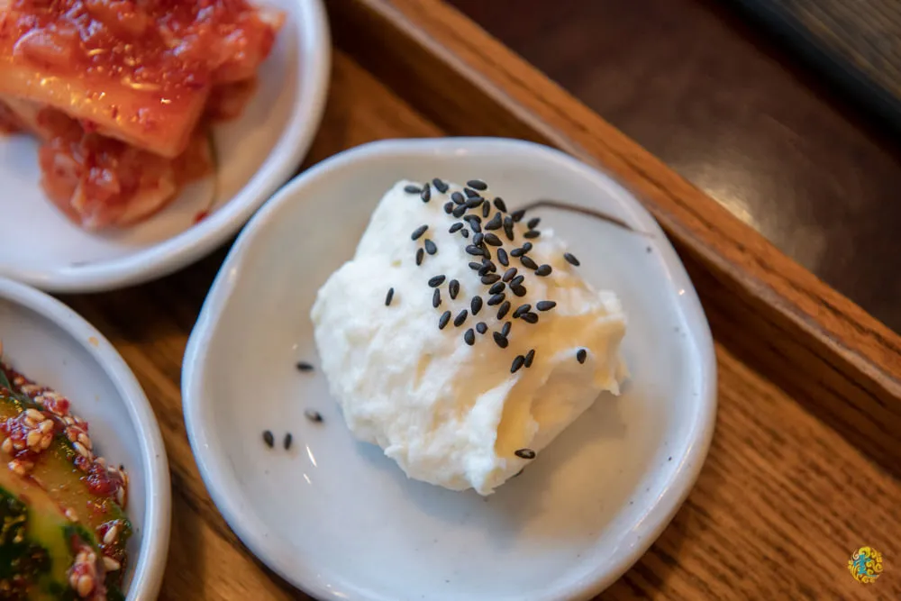 韓國的粥品上頭一定會放有兩撮黑白芝麻粒,자연 죽的配菜樣式好像都是固定的,凌雲看其他桌的也一樣,有芝麻薯泥、辣蘿菠、香菇片、辣黃瓜與滷肉絲。每個粥品都會附上一碗溫開水與一個空碗,空碗是讓你先盛放一些粥,可以讓粥品比較快降溫方便食用,這點真的是相當貼心又方便。粥品本身則是牛肉切絲、香菇切片、洋蔥、蔥花與青菜切絲等蔬菜一起熬煮,鮮嫩的牛肉,整體口感順滑且清淡,將所有配料一起加入攪拌後,提昇了豐富又有層次的口感,輕微的辣度很對凌雲的胃口,一下子就吃光了。