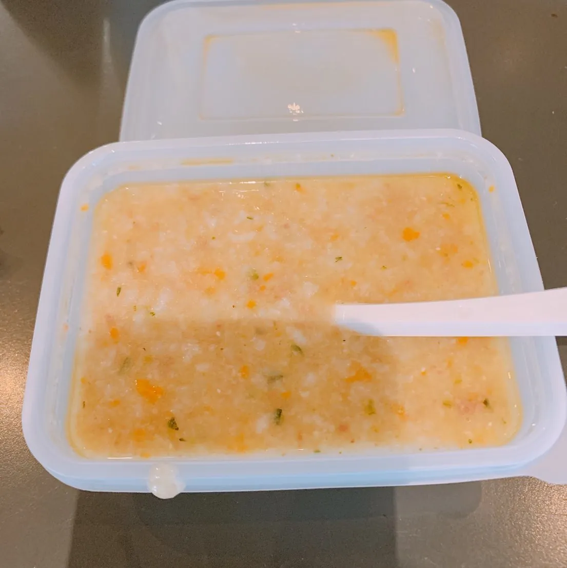 圖|一共三盒的兒童粥品,小凌雲吃得很開心。