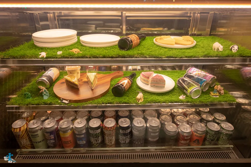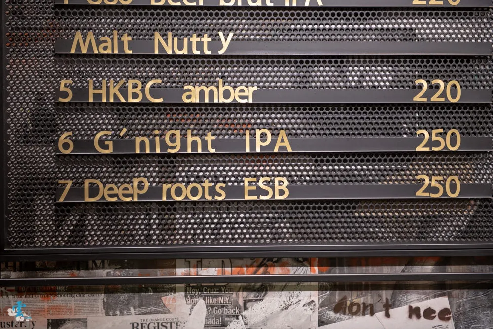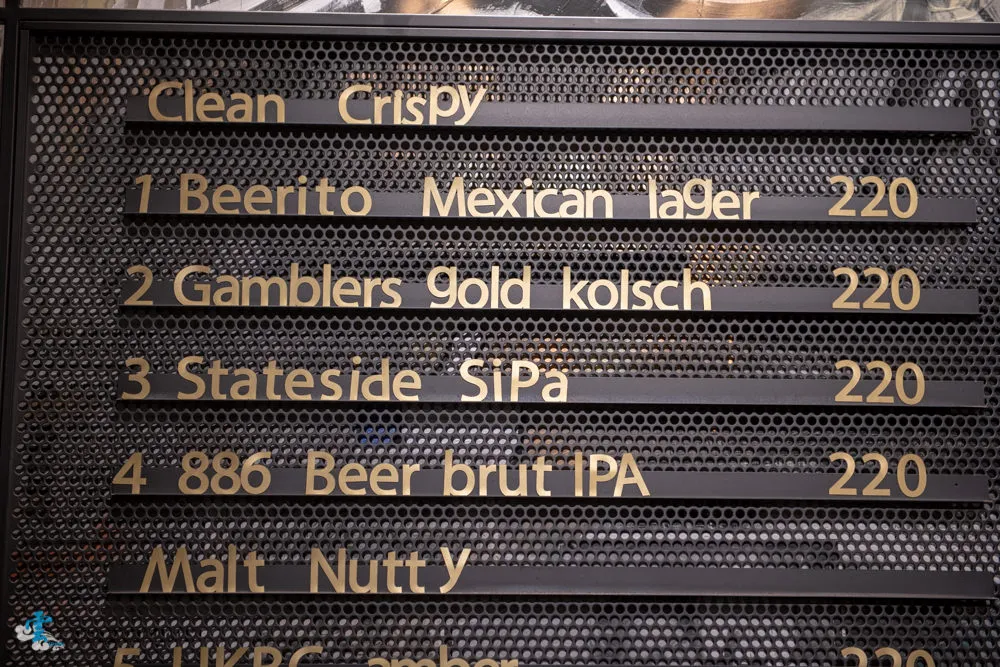 一走進來提供精釀啤酒的L型吧檯相當吸睛,棧酒食吧特別與位在八里的『886 Brewing Co.』釀酒廠合作,發展出七大類18款不同風味、口味鮮明的拉霸精釀啤酒。吧檯內有著一整排精釀拉霸啤酒的專屬冰櫃,提供現點現裝啤酒,嚴格控管精釀啤酒的溫度,以確保其風味。