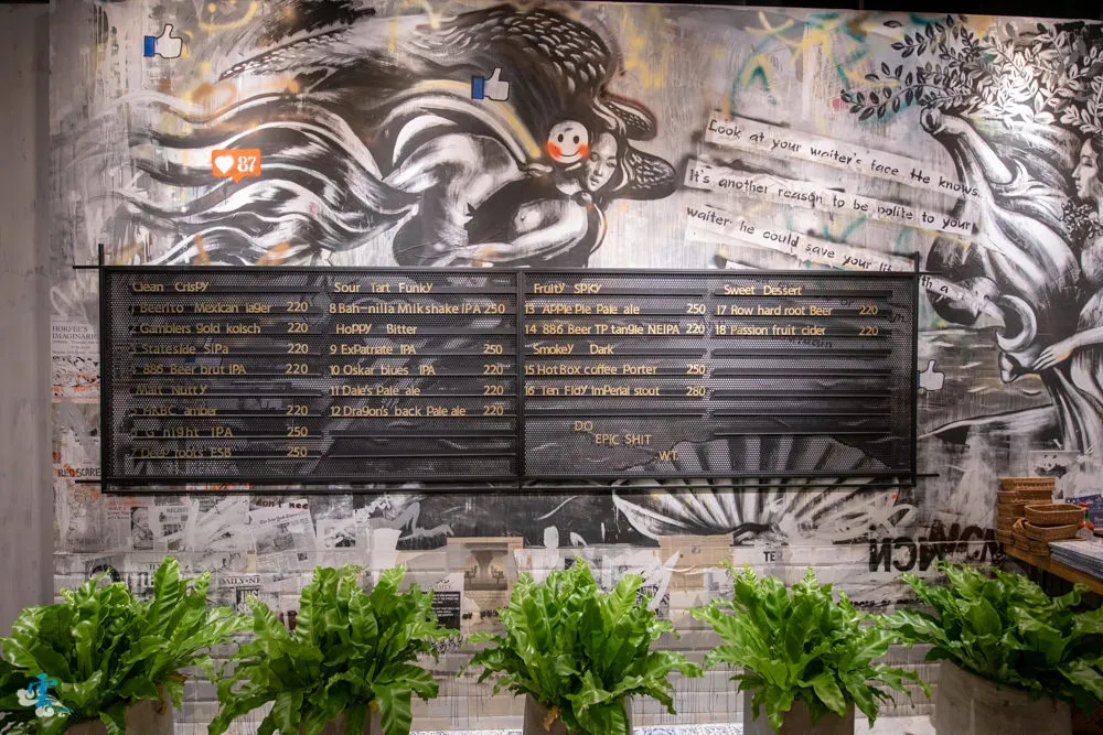 圖|18款精釀啤酒酒單與後代藝術插畫,風格鮮明。