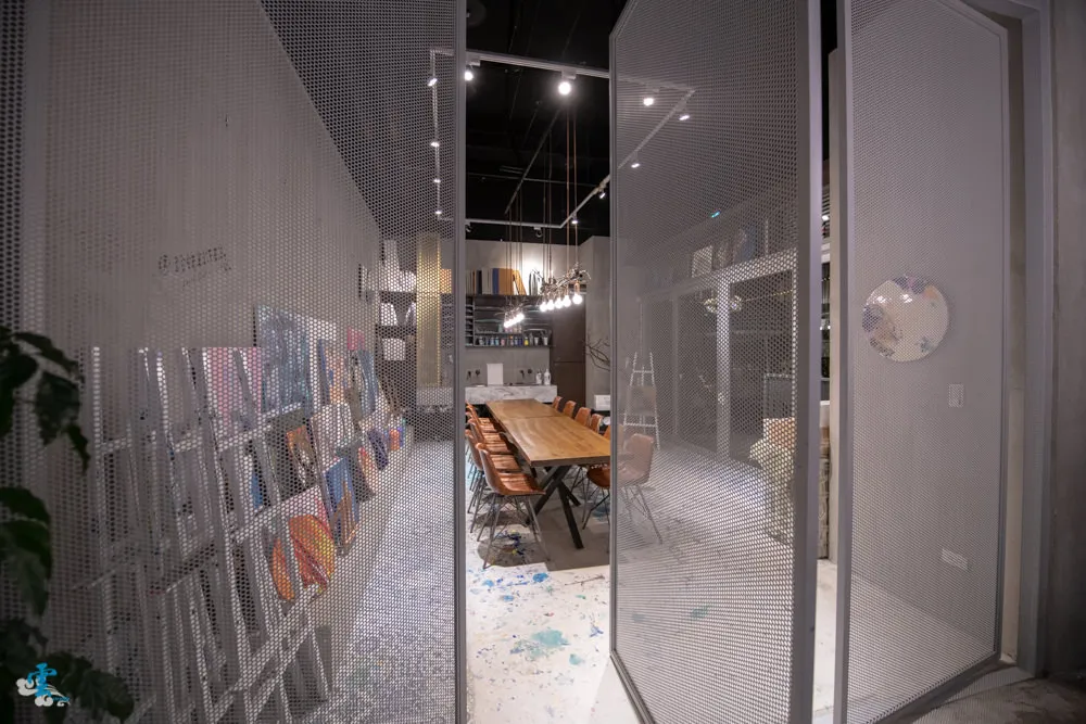 用餐空間的最裡面,還有一個隱密藝術空間,以特殊的網狀門與一般用餐空間作了區隔,裡頭擺放了不少美麗的畫作,儼然就如同一個精美的個人畫室,充滿著特別的藝文氣息,在這用餐飲酒感受一定格外不同。