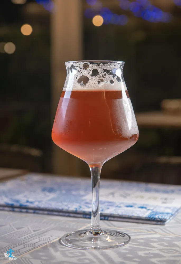 這杯是屬於酸味&果酸&發酵風味,IPA是India Pale Ale的縮寫,中文可以翻譯成『印度淡色艾爾啤酒』。IPA的特色在於使用較多的啤酒花,層次豐富且濃郁的啤酒花香,通常有著比較明顯的苦味。這杯有著果香及皮革的Funky複雜香氣,酸澀的苦味稍微超出凌雲所預期。凌雲選擇帶有鹹香與鮮甜滋味的肉腸蛤蜊麵,來當作這款酒的配餐。