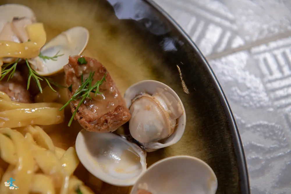 厚實的麵體吸飽了蛤蜊精華,橄欖油蒜香撲鼻,鹹香的肉腸適時的中和蛤蜊的鮮甜海味,這味道的厚度你一定會喜歡。