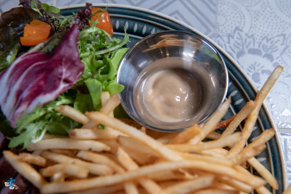 帶筋的紐約客嚼勁十足越嚼越香,一口咬下彈牙噴汁,沾點細緻溫和的辣根醬提味,別有風味。細長的薯條,外面一點點酥,軟綿的內裡,脆爽的口感十分吸引人。