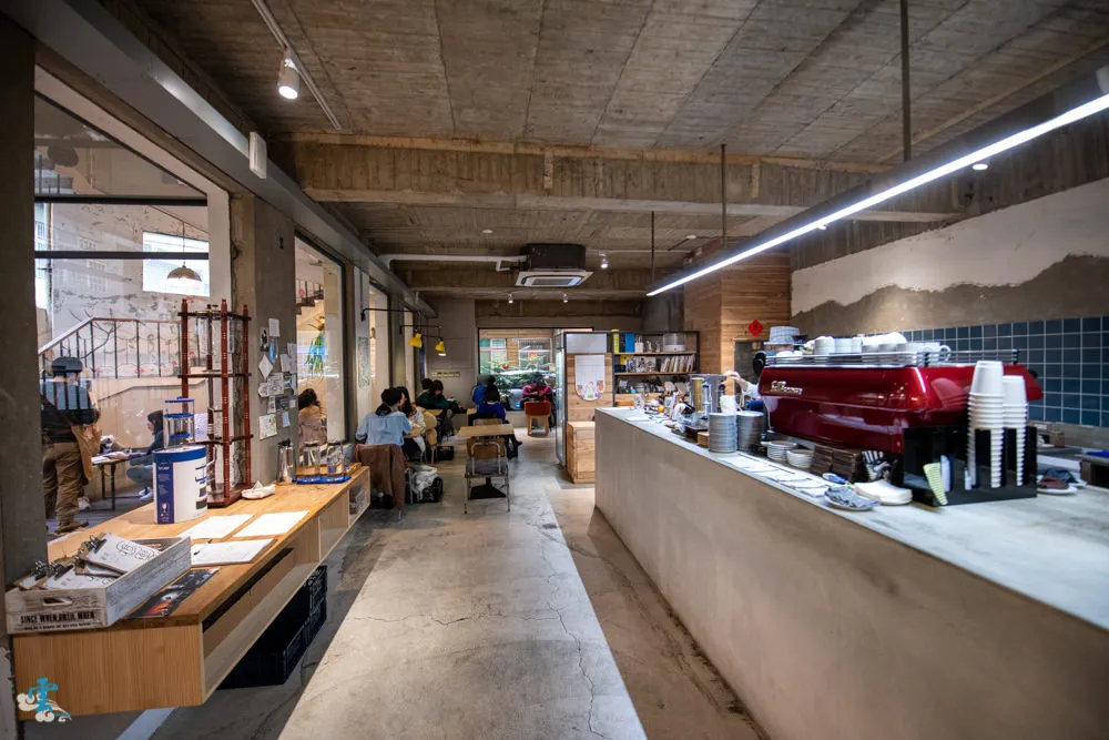 ReEcho Coffee 隱身在靜逸的小巷中,保留前身幼兒園的基本格局,注入傳統粗獷硬派的工業風格,裸露的鐵件、金屬與管路搭上水泥裸牆與天花板,透過原始建材詮釋那份粗獷風貌,連吧台都使用水泥粉牆設計,以灰白為空間主色,塑造冷調氛圍,搭配木質紋路增加視覺質感,也帶來一絲絲溫暖感受,形塑工業風獨特的粗獷與韻味。
