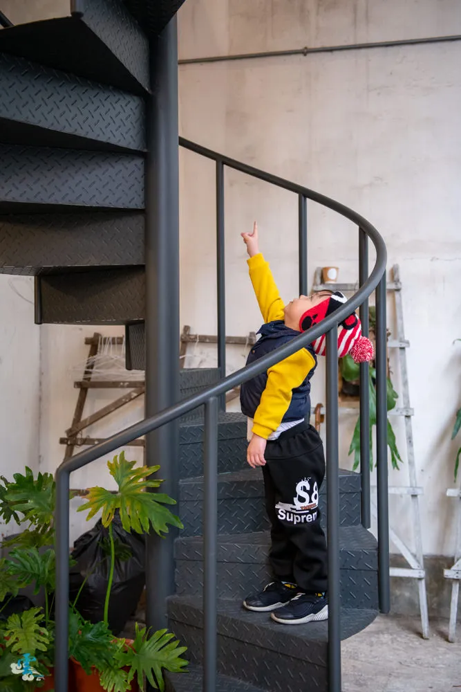 圖|小凌雲超喜歡螺旋鐵梯這個點,一直流連忘返。