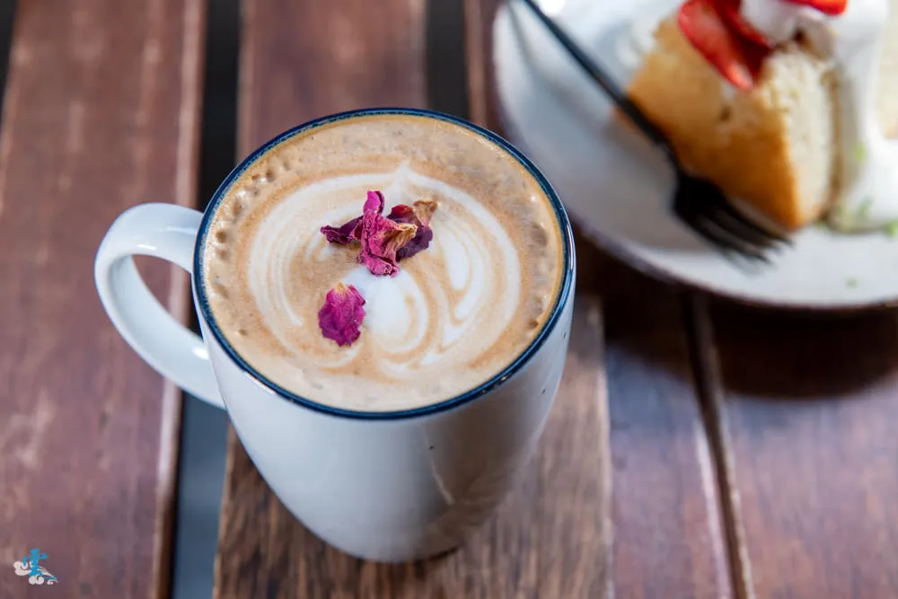 菜單上花香拿鐵以下的咖啡,都有事先加糖,咖啡因的濃淡可以選擇,馥郁的芬芳花香撲鼻,濃郁滑順的口感,加上咖啡本身的甘甜,輕盈的奶香在舌尖綻放。既品嚐咖啡亦品味花香,咖啡香與花香自在的混溢,只想帶著這份香氣,沉浸在悠閒的午後時光。