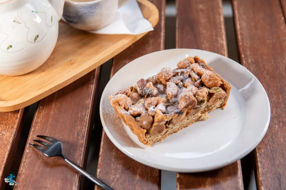 這是當日手作甜點之一,或許是海鹽的關係,讓焦糖的甜顯得輕巧,一口咬下,各種甜蜜與清脆在舌尖打轉,口感豐富有嚼勁,些許的脆度饒富咀嚼樂趣,塔皮酥脆爽口,略帶點淡淡奶香,真是令人滿足的甜點時光。