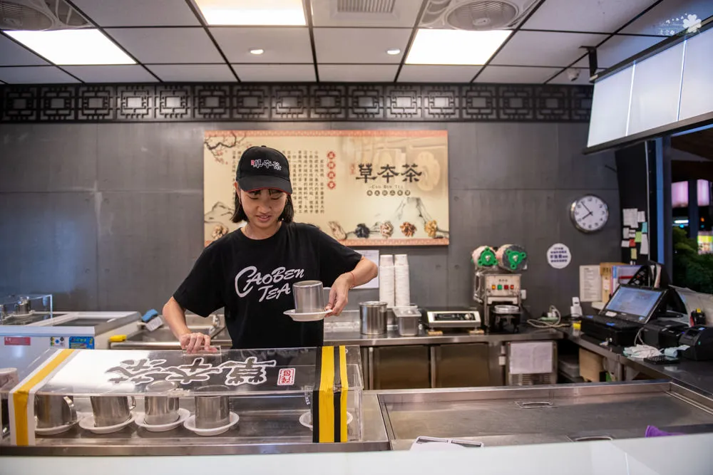 圖|不時的有顧客前來選購養生飲品,只需片刻就能入手想要的養生飲品。