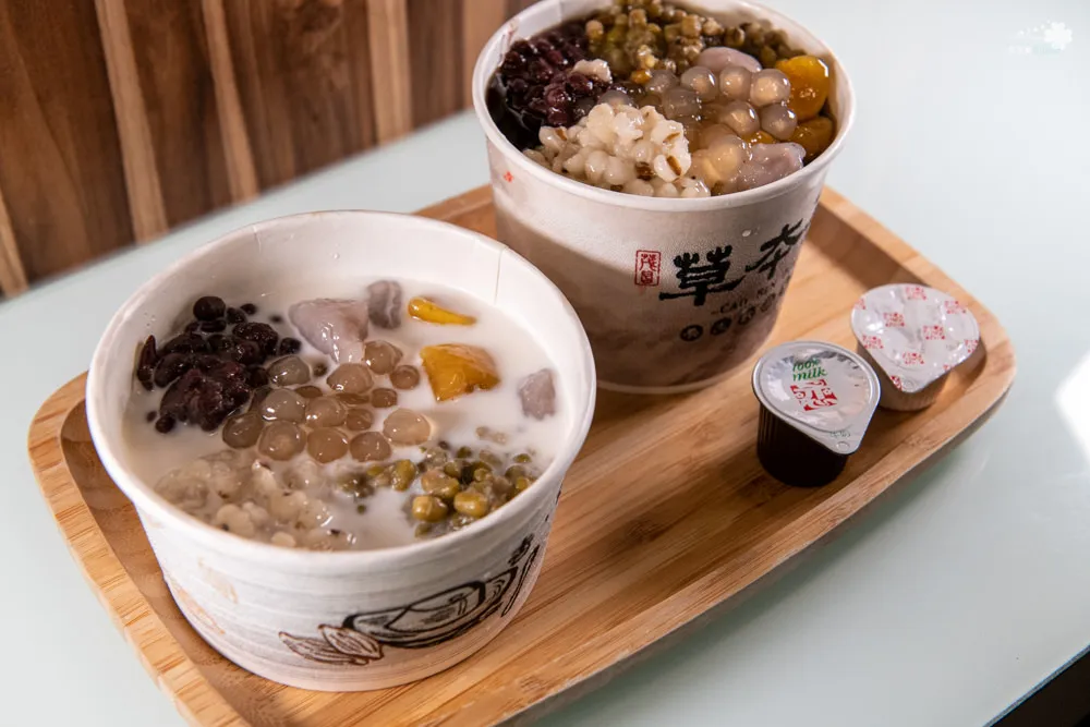 店內的養生飲品與甜品,全部都是純手工熬煮,全部都天然無添加,高人氣的招牌青草茶是利用13種青草藥,花費好幾個鐘頭熬製而成,不只清涼退火,更是消暑聖品,隨著現代人在飲食、生活習慣上的改變,青草茶已然成為四季皆宜的飲品了。另一款超人氣的配料-仙草,是嚴選知名的關西仙草乾長時間熬煮而成的,風味濃郁,絲綢滑順的口感,輕巧的激起甜的漸層漣漪,讓人意猶未盡。