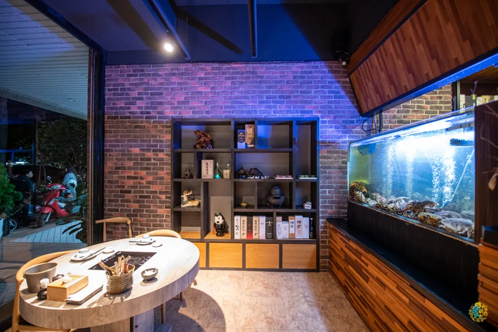 山上走走 日式無菜單海鮮鍋物位在新竹市三民路上,前方的護城河週邊有著眾多停車格,平日停車方便好找,如果是週末假日,因為鄰近新竹巨城購物中心的關係,比較容易塞車且車位也相對比較難找,如果是騎車前來就比較不用煩惱車位問題。店門口一整面落地窗,除了採光極佳之外,也延伸了店內的視覺感受,透過暖色系燈光在輕工業風中帶來些許溫暖,以日式酒瓶與小物為空間帶來視覺亮點,整體感覺舒適又乾淨,朋友聚會、家庭聚餐或部門春酒尾牙都很適合。