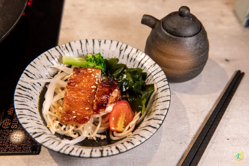 淋上和風醬的照燒雞腿,油脂光澤晶瑩誘人,一入口的細緻鮮嫩滋味令人回味,淡淡的七味粉讓清爽的冷麵更添風味,很稱職的前菜組合。