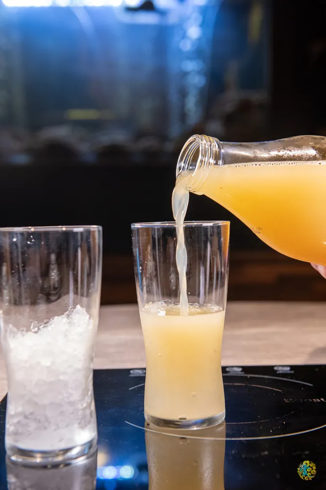 使用來自日本的柚子原汁,加入梅乃宿的清酒調製而成的柚子酒,開瓶時,柚子獨特的酸香淡淡的飄出,入口時,甘甜清新的清爽風味,一點點酸還帶點些微的甜味,加些冰塊感覺更優,是款女性會喜愛的酒品。