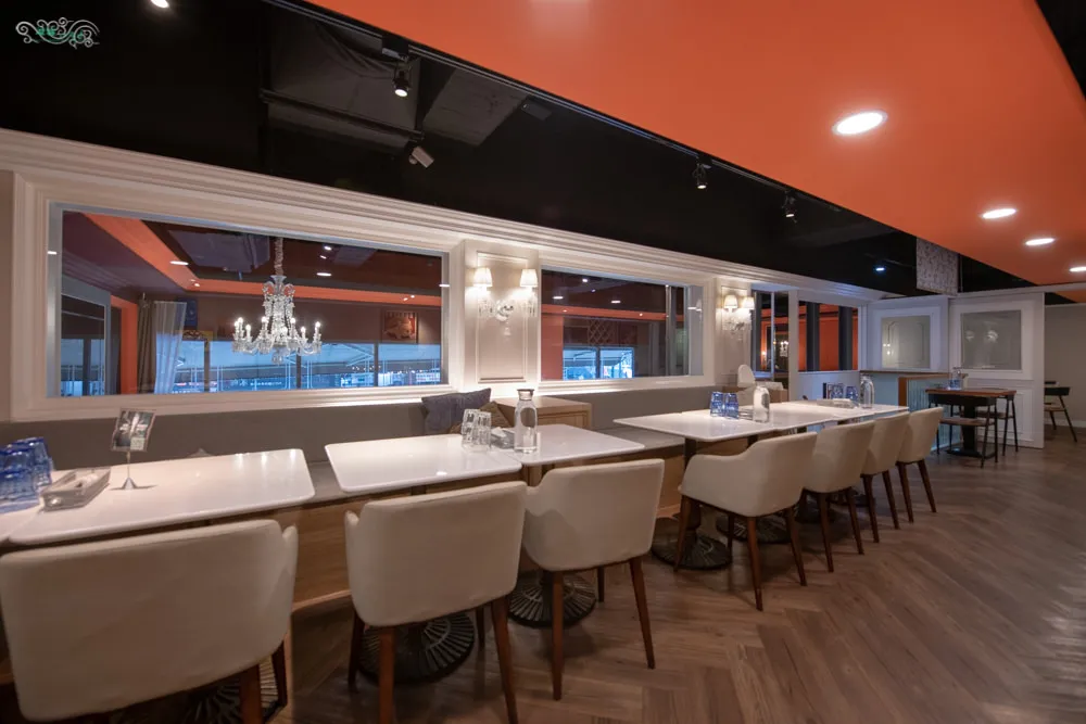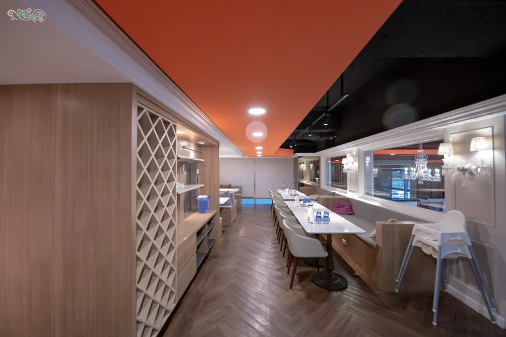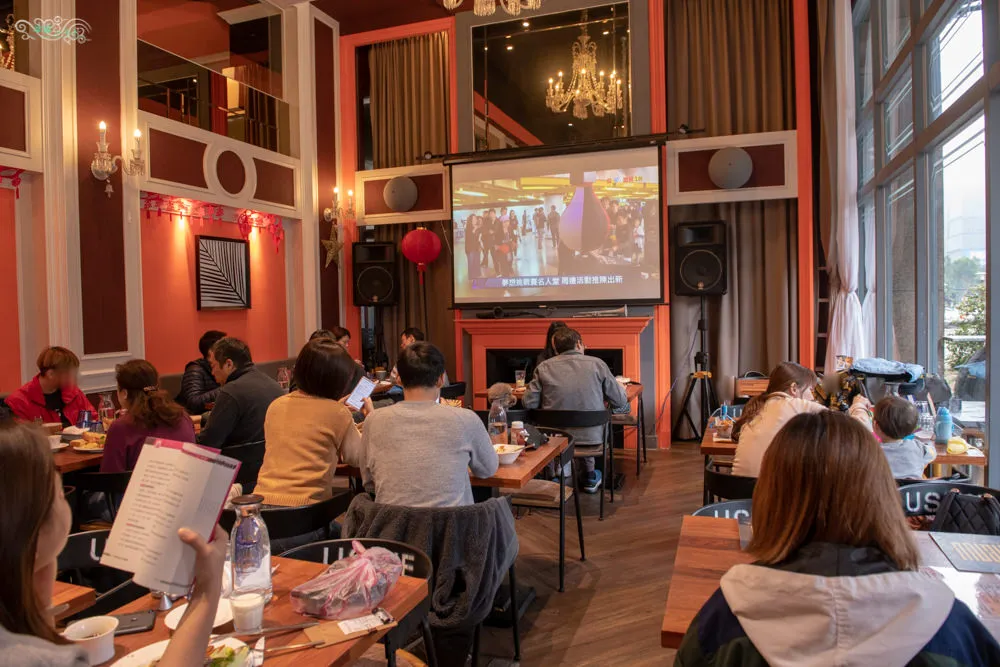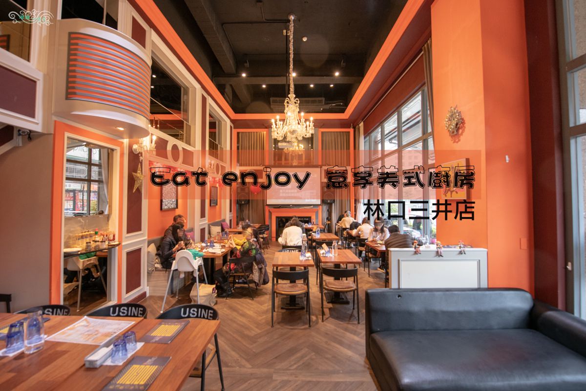 Eat enjoy 意享美式廚房離林口三井outlet很近,不過若是要使用導航,目標建議設定為林口車麗屋會比較好找。Eat enjoy位在社區型大樓的一樓,碩大的落地窗與挑高的空間帶來明亮的採光與良好的視覺延伸感,以橘紅色作為空間的色彩基調,給人古典沉穩的視覺感受,木質地板與桌椅緩和了大面積活躍的橘紅色,讓整體視覺感受更為舒適平衡,華麗的大吊燈增添一股優雅與貴氣,溫暖舒適的用餐氛圍油然而生。