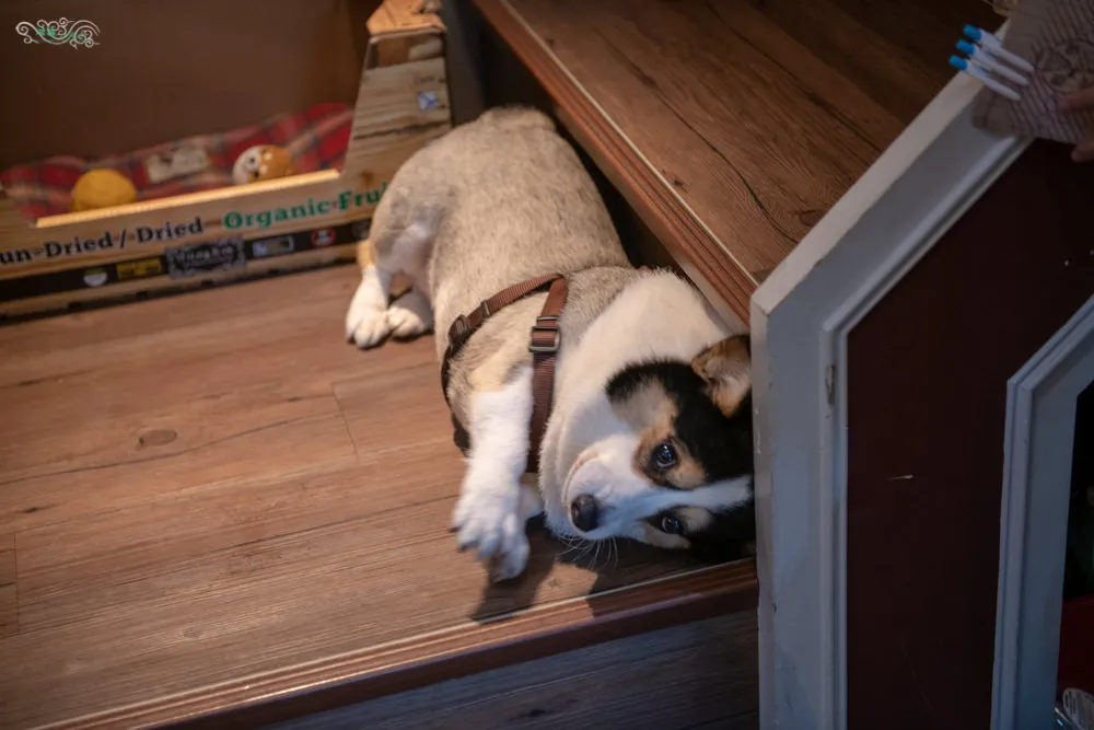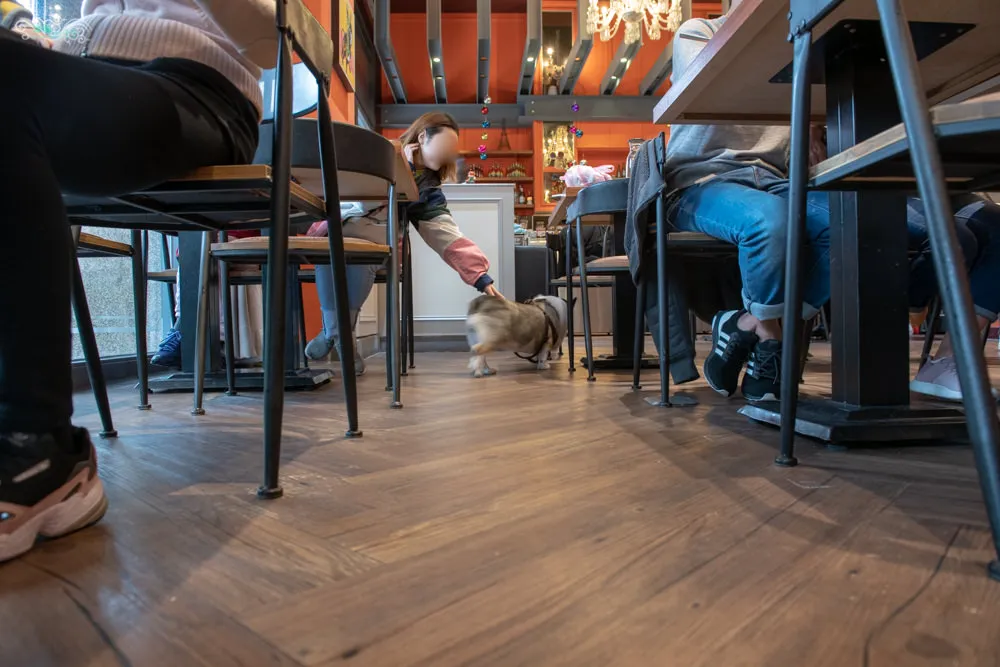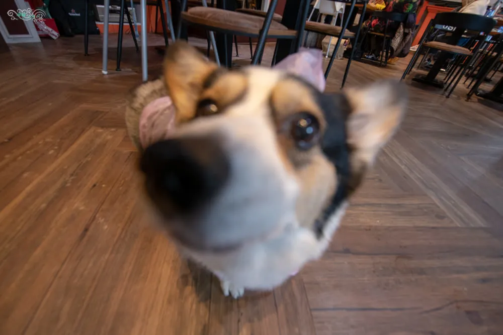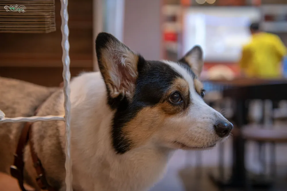 店狗Gucci是隻可愛的柯基犬,五短身材與圓滾滾的迷人大眼,擄獲了眾人的目光,充滿活力又乖巧親人,小巧的身高剛好不受桌椅高度的影響,可以看見Gucci不時的在店內巡邏閒晃,所到之處總是吸引了顧客的注意。Gucci不只會握手還會拜託拜託,只是受限於天生體型的關係,Gucci是躺著拜託的,真的超可愛說,屁股上還特地被美容成一個愛心圖案,看Gucci走路時愛心不時的左搖右擺,更是吸睛。
