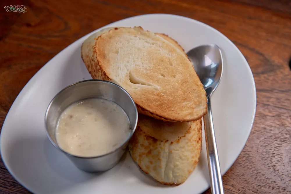 烤的酥黃香脆的麵包切片,沾點暖呼呼且香氣逼人的奶油蟹肉醬,口感豐富滋味濃郁,只點了兩片讓人意猶未盡啊。