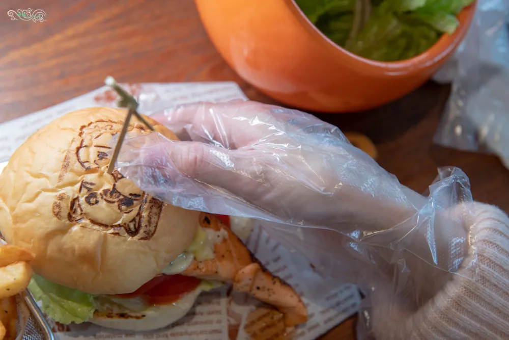 點漢堡排餐,店家都會提供一雙一次性手套方便顧客享用美味不沾手,真的非常貼心。