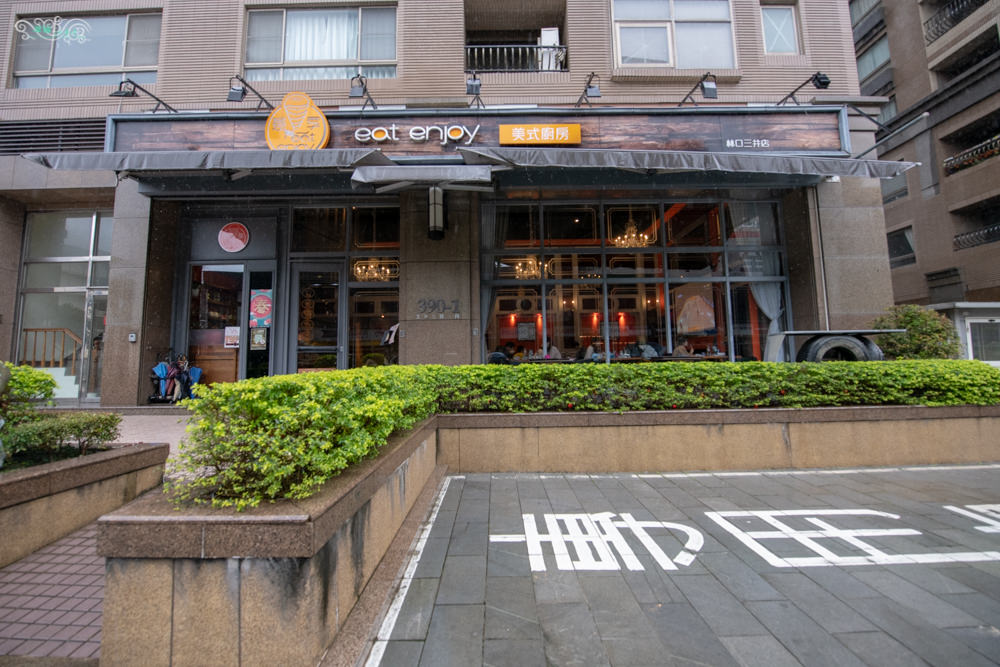 Eat enjoy 意享美式廚房 林口三井店就在林口三井outlet旁邊,對面是林口車麗屋,走路去林口三井不過幾分鐘路程,相較於林口三井內餐廳的價位,Eat enjoy更為平價,CP值更高。有可愛柯基Gucci坐陣的Eat enjoy 意享美式廚房,是個寵物友善餐廳,看到不少客人帶著心愛的毛小孩一起來用餐,輕鬆活潑的氛圍,年輕親切的服務,合理的價位,對寵物友善的態度,很值得推薦。