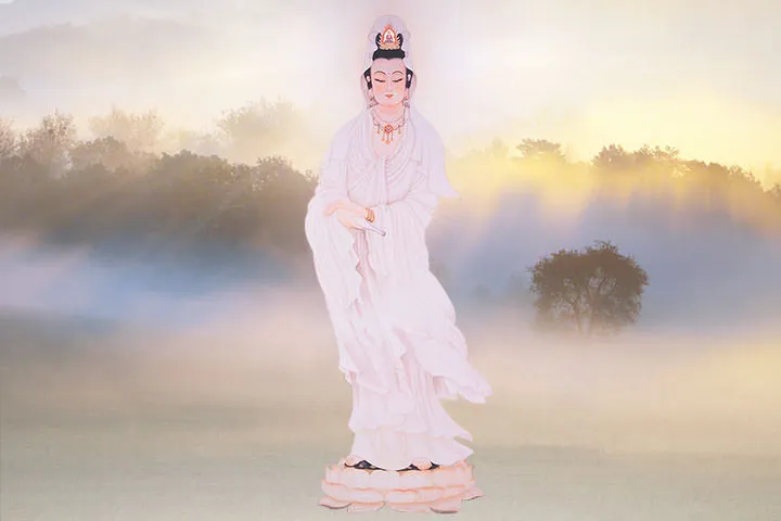「無盡意!觀世音菩薩摩訶薩威神之力,巍巍如是。若有眾生多於淫欲,常念恭敬觀世音菩薩,便得離欲;若多瞋恚,常念恭敬觀世音菩薩,便得離瞋;若多愚癡,常念恭敬觀世音菩薩,便得離癡。無盡意!觀世音菩薩有如是等大威神力,多所饒益,是故眾生常應心念。若有女人設欲求男,禮拜供養觀世音菩薩,便生福德智慧之男;設欲求女,便生端正有相之女,宿植德本,眾人愛敬。無盡意!觀世音菩薩有如是力,若有眾生恭敬禮拜觀世音菩薩,福不唐捐;是故眾生皆應受持觀世音菩薩名號。」