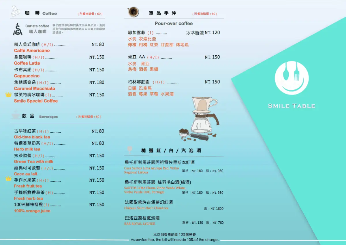圖|飲品菜單,圖片來自微笑餐桌臉書粉絲頁。