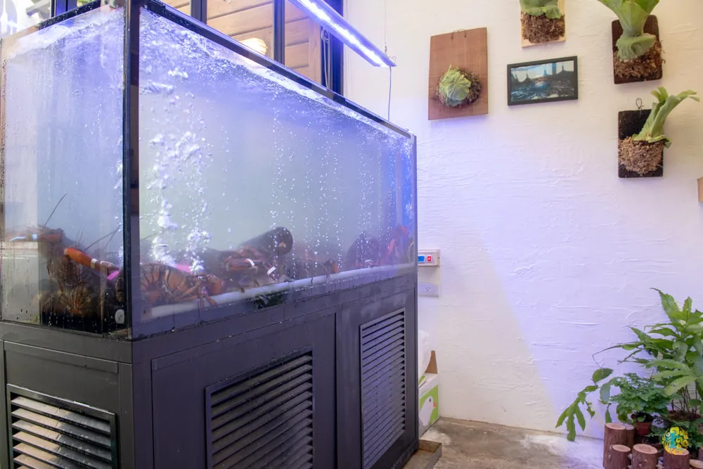 圖|一打開微笑餐桌的大門,你會看到門邊有個專業水族箱,裡面全都是活跳跳的大龍蝦。