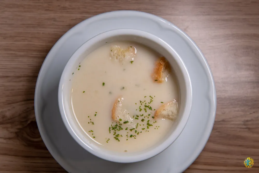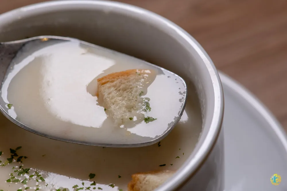 附餐的經典濃湯相當於每日濃湯,不一定每天都相同,這一天的是蘑菇濃湯,清淡的鹹味中帶出蘑菇和奶油的天然香味,濃郁滑潤的口感,浸泡過後軟棉的麵包丁增添了口感的層次。