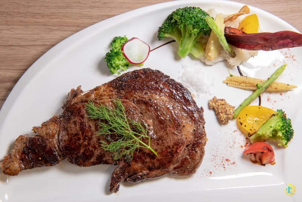 圖|色彩繽紛的擺盤,大塊的牛肋眼香氣逼人。