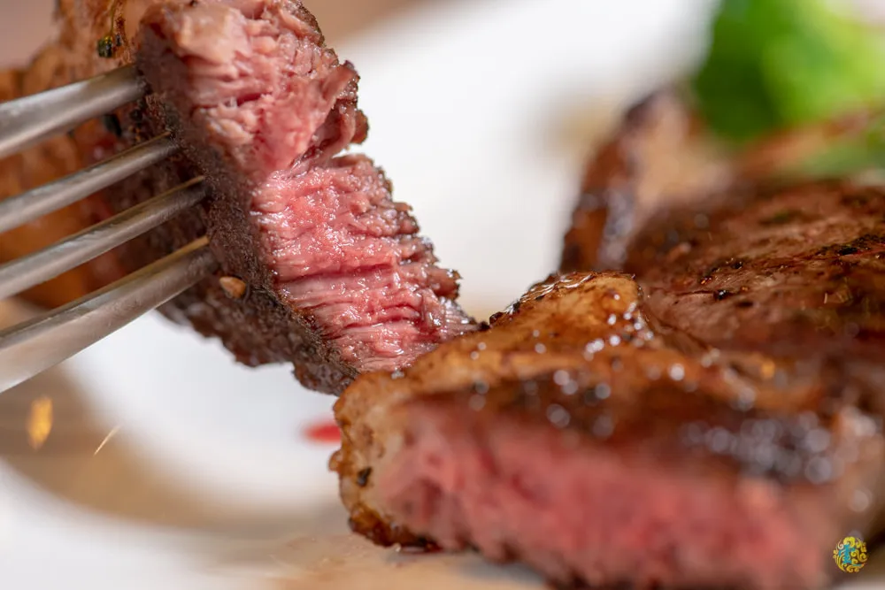 為了讓小玲雲也可以吃一點,這次選擇的是七分熟,不過凌雲覺得五分熟一定更棒。色彩繽紛的擺盤配色豐富了視覺感受,牛肋眼的香氣毫不客氣的席捲嗅覺、挑逗味蕾,鮮嫩多汁的口感瞬間在舌尖盡情奔放,Q中帶勁的咀嚼感受,讓人五感得到無比的滿足。