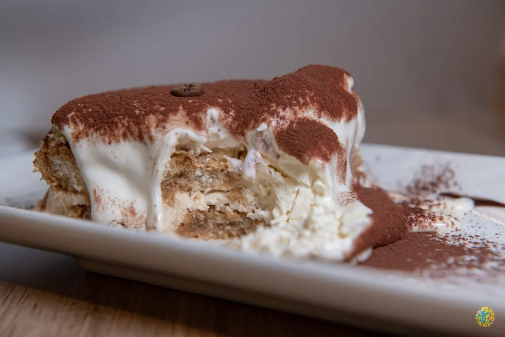 濃濃起司混合著酒味與可可香氣,濃郁不膩的在空氣中蔓延,最上層馬斯卡彭起司、蛋黃與糖的融合,帶來入口即化的綿密柔軟,咖啡酒的味道均勻散布在手指餅乾中,入口後香醇柔細的口感,仿若幸福的召喚。