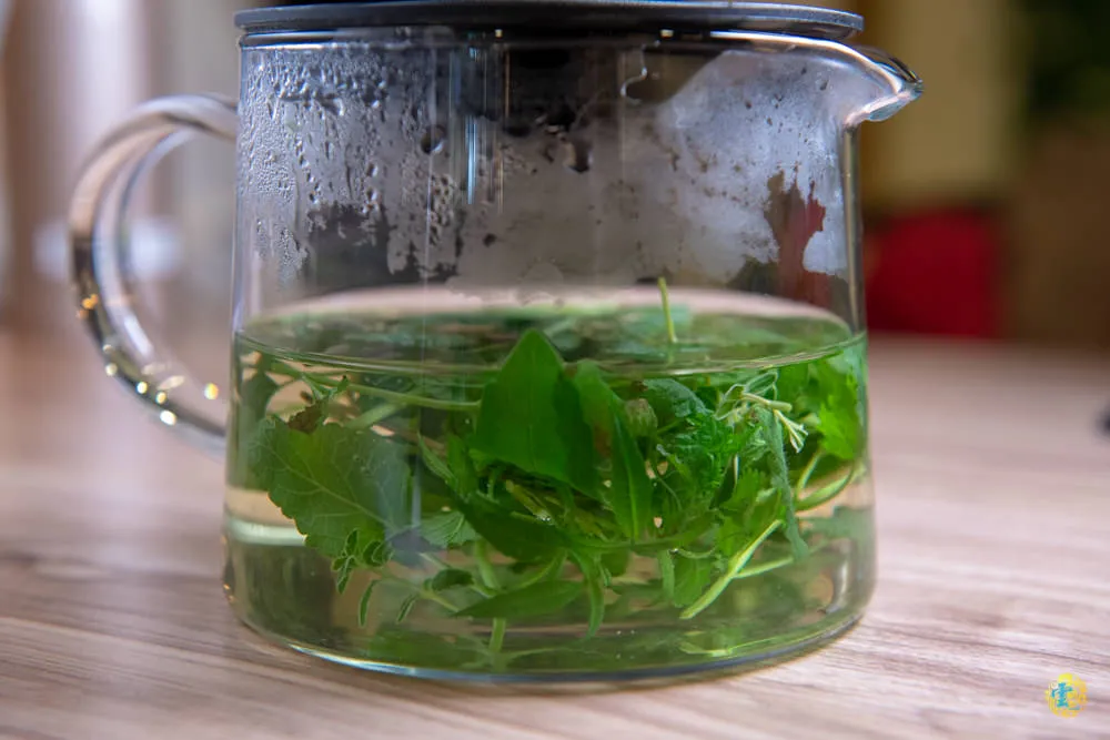 香草直接就在店門外栽種,清洗處理後直接新鮮入茶,清爽的茶香縈繞,尾韻回甘有助於消除餐後的油膩感。