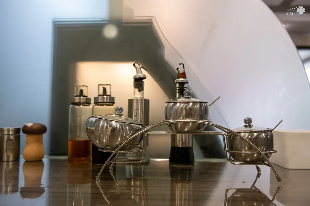 店內的餐具、調味醬料與酒水皆採自助式供應,每一樣物品皆分門別類的排列整齊,取用相當方便,看著也舒服。