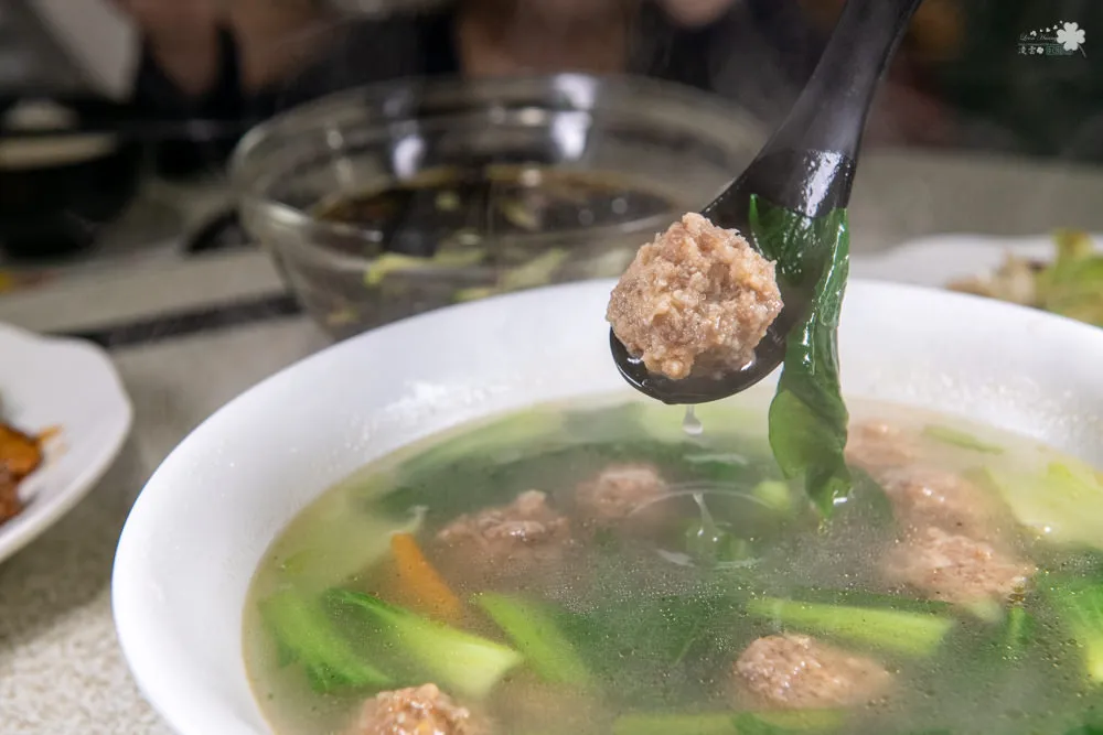 熹正園手工製作的肉丸,肉丸雖然沒有很緊實,不過嘗起來相當鮮嫩濕潤,肆溢的肉汁與湯汁在嘴裡噴發,滑嫩的口感適中,在享用完一桌輕麻小辣的美味後,來上這碗湯真是再好也不過了。