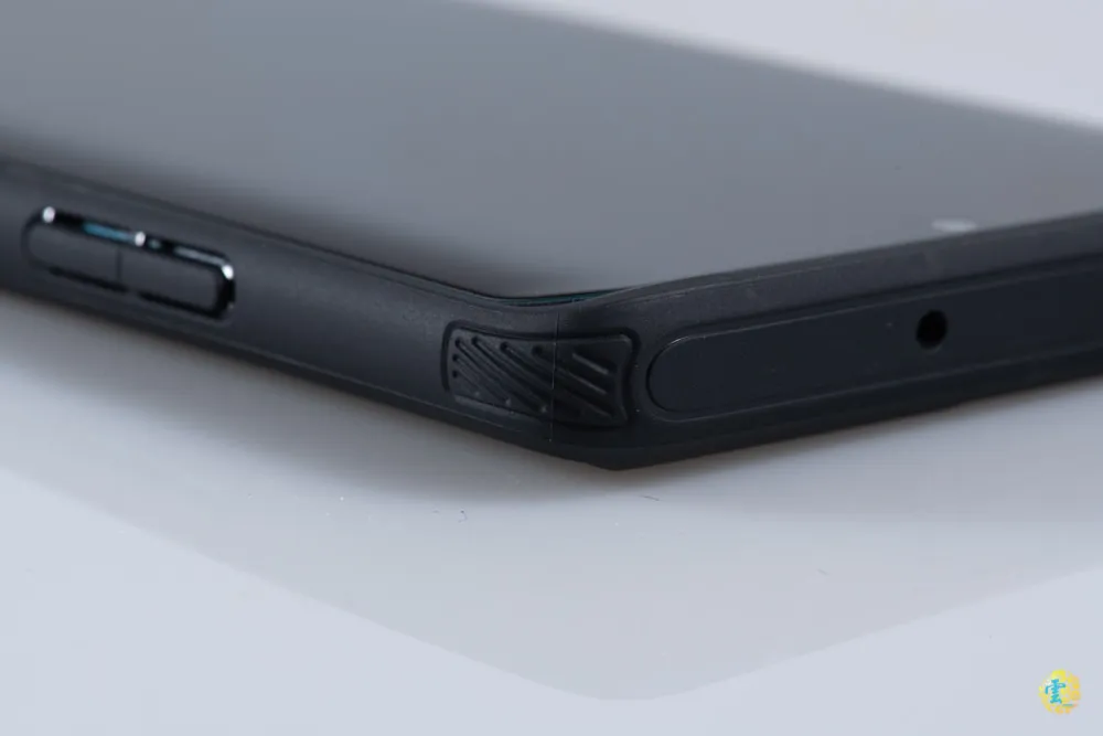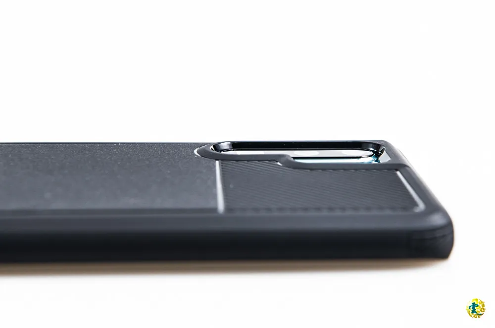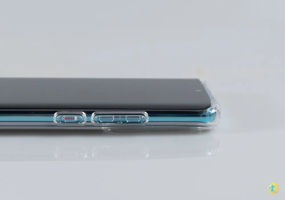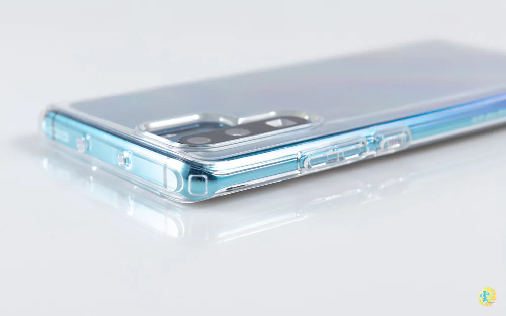 在鏡頭周圍同樣有墊高的設計,內裡的四角一樣也有氣墊設計,可以有效降低外力撞擊,邊框同樣加高以減少螢幕或鏡頭刮傷。