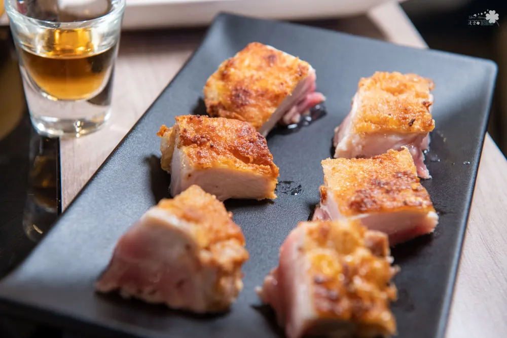 這是老闆招待的副餐,伊比利豬被稱為會走路的橄欖樹,有別於一般豬肉,伊比利豬有著類似大理石紋路般的油花,還帶著獨特的橡樹果實清香,是唯一不需要煮到全熟的豬肉,初入口時誘人的清甜味在嘴裡滿溢,飽滿鮮明又細嫩的口感,有著與眾不同的細緻風味。