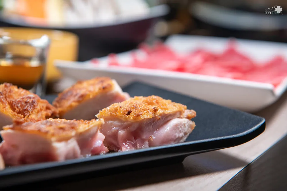 雞湯大叔已先將雞腿排先煎至五分熟才送上桌,所以只要在下鍋煮7-8分鐘即可食用,雞腿排發著晶瑩誘人的油脂光澤,令人垂涎欲滴的細緻鮮嫩滋味,完美得達到油脂與口感最美味的平衡,雖然每一款雞湯中已放有乾煎雞腿排了,但這樣的美味仍讓人忍不住想加點啊。