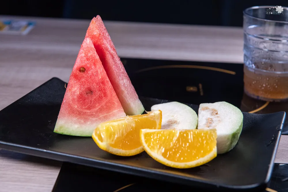 在享用完美味火鍋之後,服務人員會將桌面稍事整理過後,送上當季水果做為餐後點心,台灣的水果就是鮮甜。