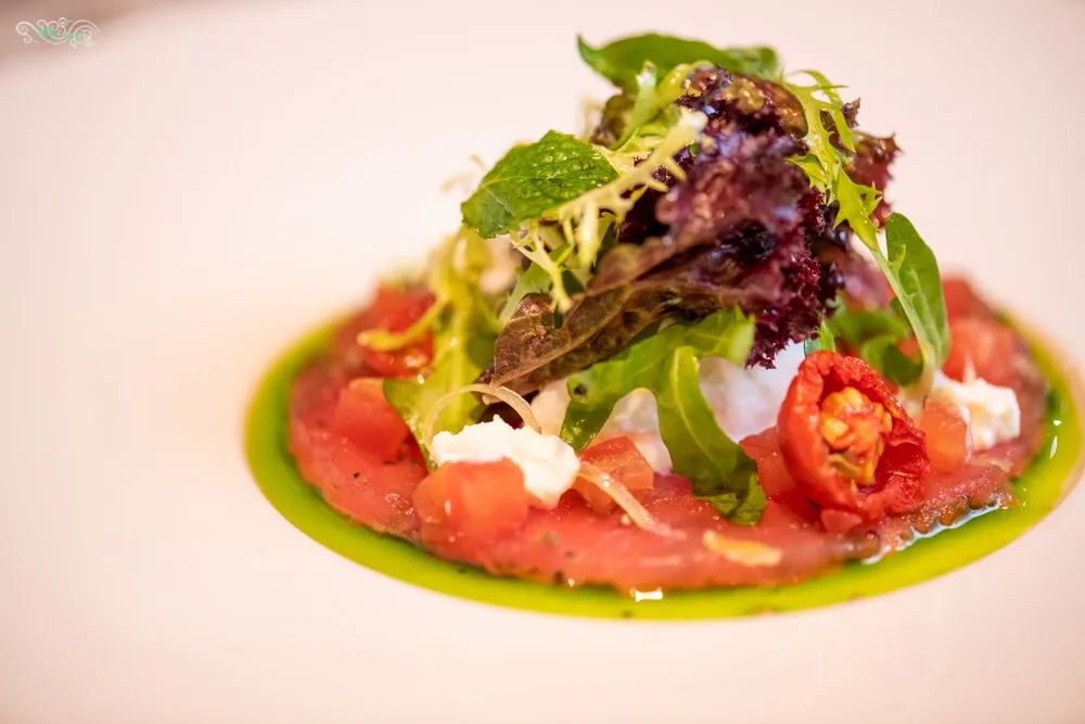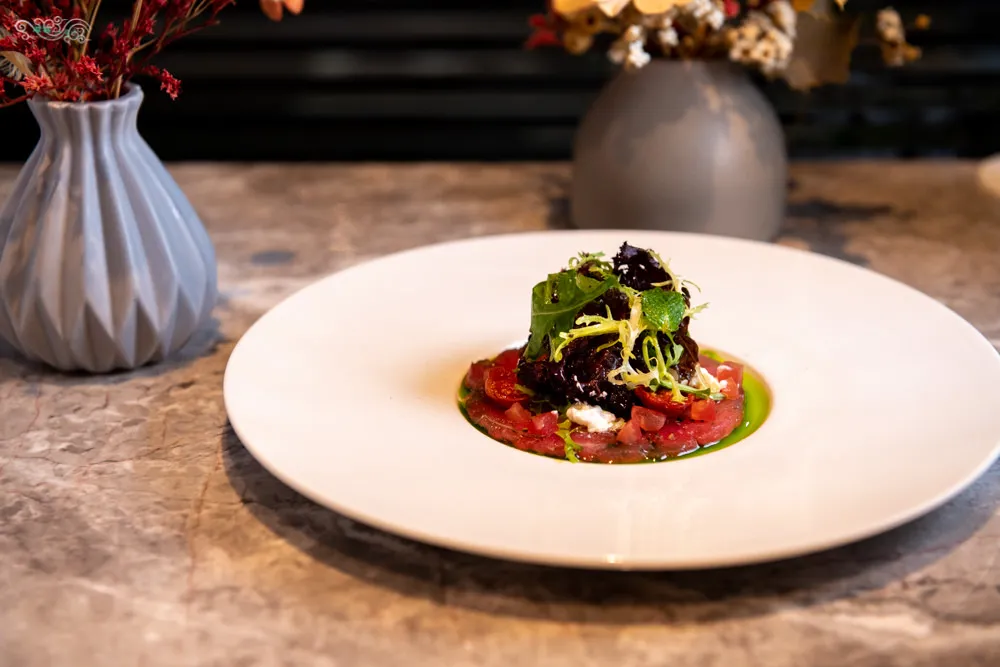 圖|鮪魚生魚片、Ricotta起司與特製綠油,碰撞出奇妙的精彩火花。