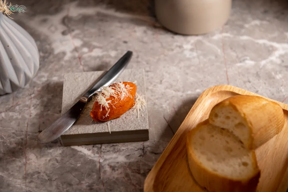 圖|令人驚艷的長法麵包,讓紅椒煙燻奶油的滋味更上一層。