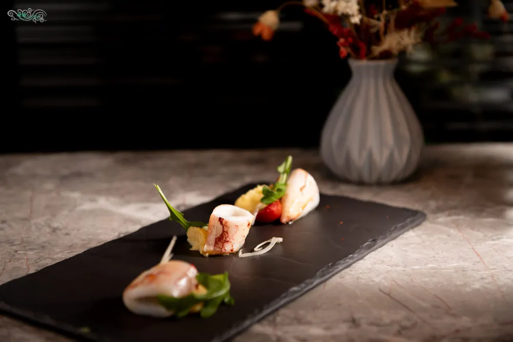 很Q且略帶咬勁的花枝,混著風乾番茄與芝麻葉提味,兼具清淡檸檬香氣與涼爽甘草氣息的茴香頭,讓豐盈的海味在嘴裡轉化為無比歡愉的舌尖感受,細緻滑順的鷹嘴豆泥將整體滋味淬鍊成獨一無二的浪潮美味。