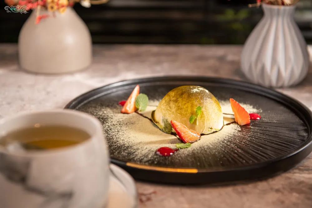 品相不定期更換的精選甜點,今日是靜岡抹茶提拉米蘇。入口滑順細柔隱含抹茶的苦澀,甜度極高的草莓毫無修飾的侵襲味蕾,讓提拉米蘇展現十足的輕柔感,這份深邃的甘甜美麗,給予舌尖滿滿的幸福療癒。