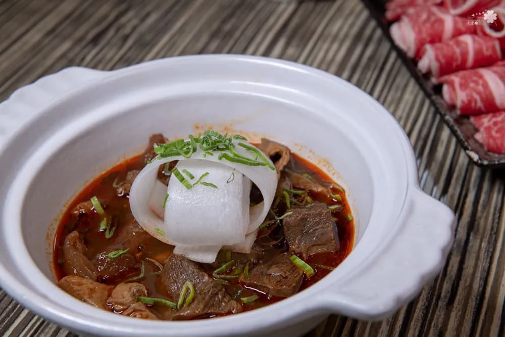 這是老闆極力推薦的吃法,牛肉汆燙個幾回後,包著特製的叻沙辣醬一起食用,麻辣香氣佔領味蕾,潑辣的麻恣情奔放,帶勁又有層次的味蕾之旅,不帶侵略性的麻辣香與軟嫩化口的滋味,層層堆疊轉化為舌尖上的美麗風景,肉汁與香辣排山倒海席捲而來,每一口都讓人意亂情迷。