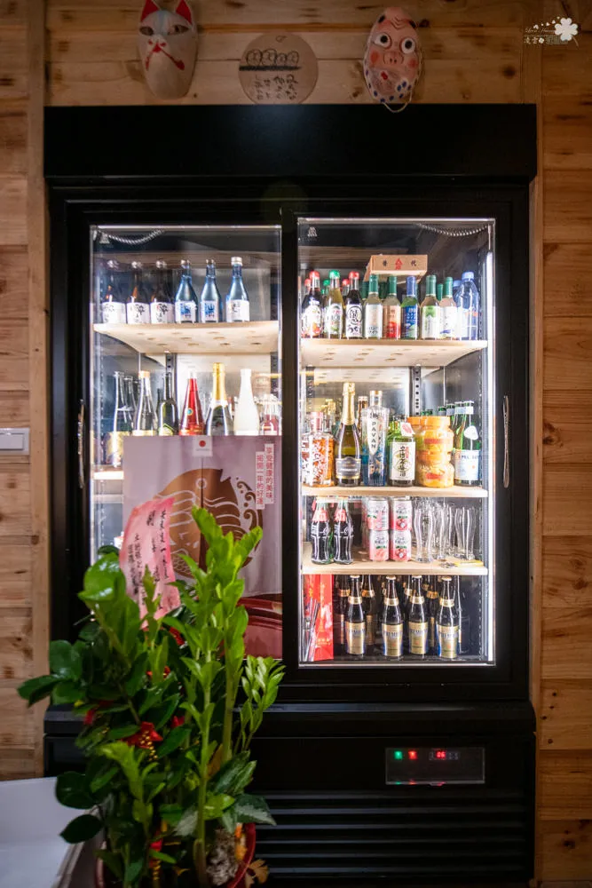一進門的右手邊就是融入裝潢中的深色冰箱,簡單俐落且整體感十足,各式酒飲選擇眾多。濃厚日式風格的裝飾與擺設隨處可見,詮釋現代簡約舒適的日本餐飲美學。