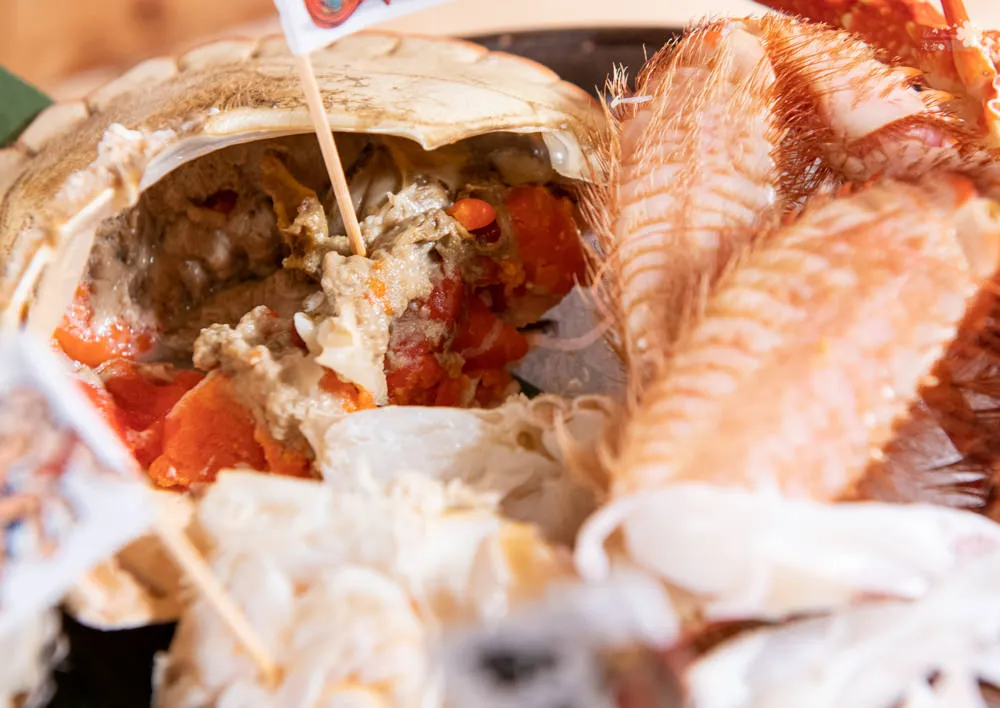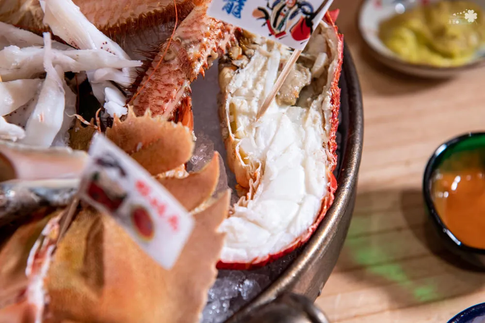 滿滿一大盤的海鮮珠寶盒,內容相當豐富,有麵包蟹、毛蟹、青龍蝦、海白蝦、軟絲、蝦蛄扁、鮑魚、帆笠貝、生蠔與海螺。膏脂豐腴綿密的麵包蟹,肉質細膩甜美,店家貼心的事先弄碎蟹螯殼,方便顧客食用。日本友人總是說;「吃螃蟹會使人變得沉默」,一點都不假,嫩滑肥美的蟹腳鮮甜甘美,每一口都讓人超滿足。青龍蝦外殼薄味香,不以衝擊味蕾取寵,肉質細嫩滑脆又有彈性。清甜的海白蝦,肉質爽脆彈牙,不過應該先吃這個再去吃麵包蟹與毛蟹的,哈。