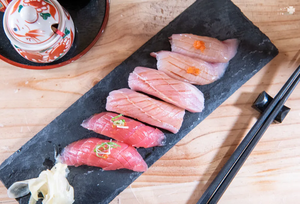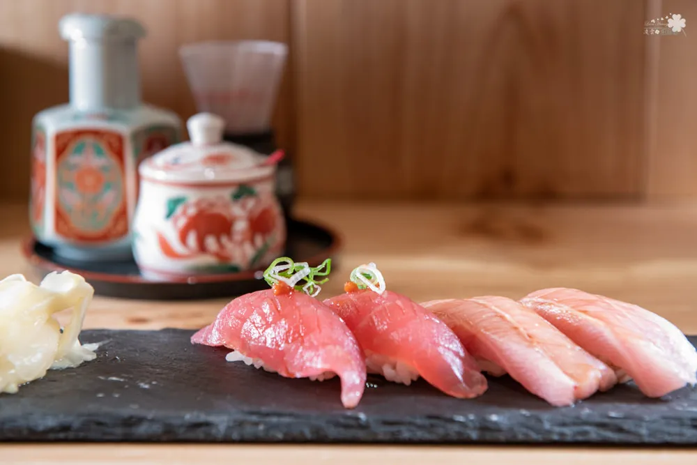 圖|一開始送上桌的鮪魚握壽司與旗魚握壽司。