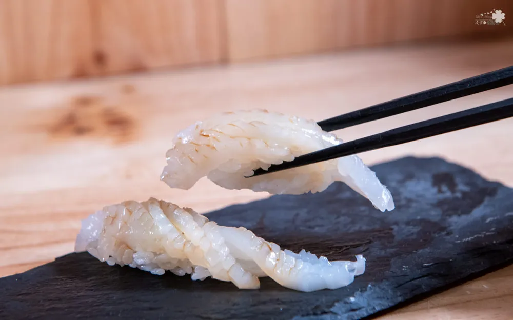 感覺像蝦又像蟹的蝦蛄扁,屬於平民版龍蝦,肉不多但是肉味鮮美又有彈性。從日本帆笠貝取下的貝柱清肉,就是大家所熟知的干貝,簡單極鮮的海味,柔嫩又彈牙。富有彈性又飽滿的生蠔,噗滋噗滋的口感,在嘴裡盡顯甘甜美麗。有盤中明珠美譽的海螺,細膩鮮美略帶濕潤的肉質,海味十足。
