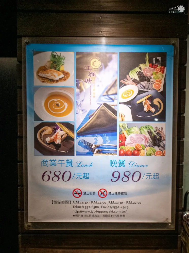 圖|江雁塘提供的餐點價位,中午也有商業午餐。