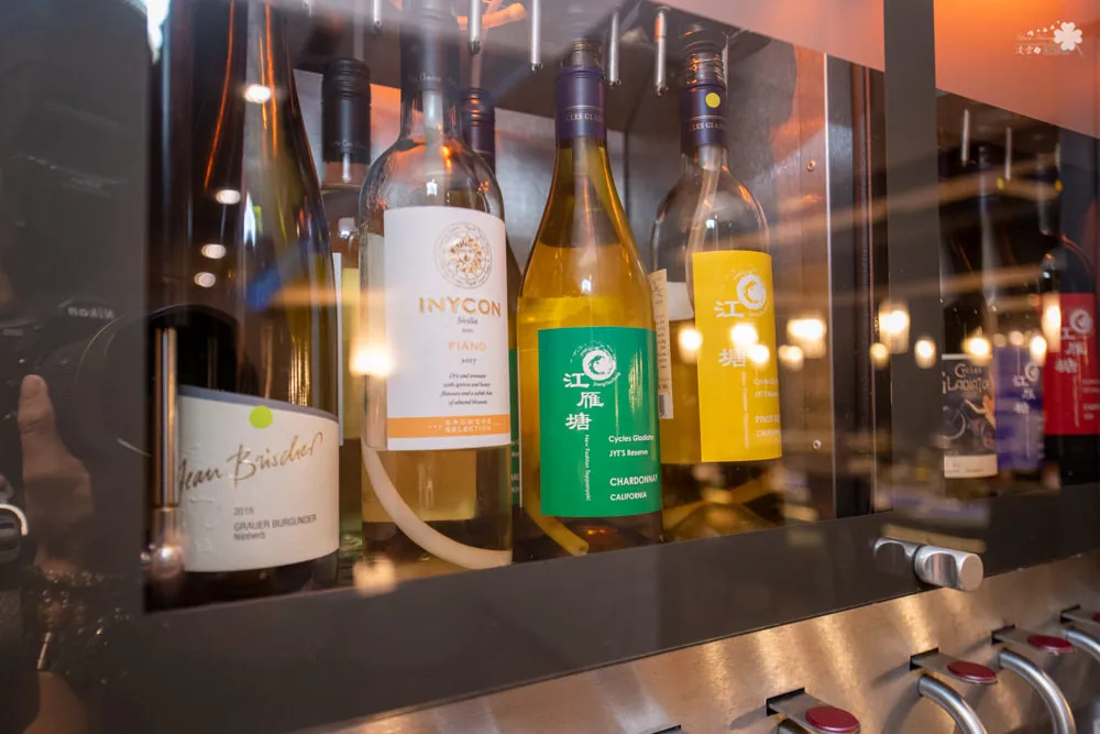 一推開大門,印入眼簾的是整面酒櫃牆,令人印象深刻。江雁塘為了推廣餐酒文化,另可現場搭配:
