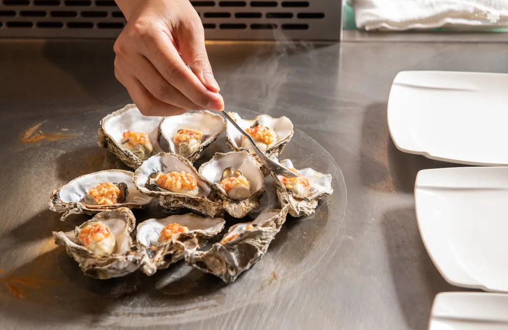 圖|美味生蠔在鐵板上滋滋作響。